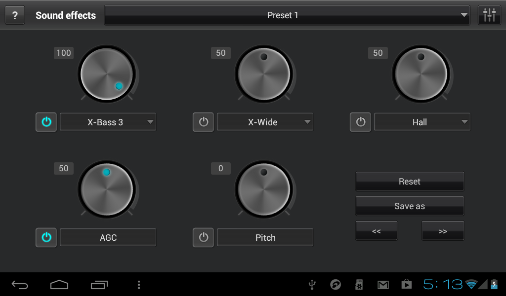 It plays almost any type of digital music files you have (.wav, .mp3, .ogg, .flac, .m4a, .mpc, .tta, .wv, .ape, .mod, .spx, .wma* and more) and, it provides a very high quality sound with various effects and enhancements such as Wide, Reverb, X-Bass.